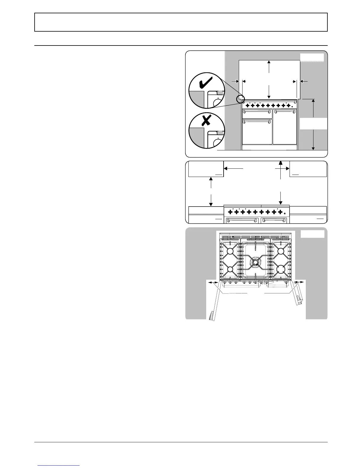 If the cooker is near a corner of the kitchen, a clearance of