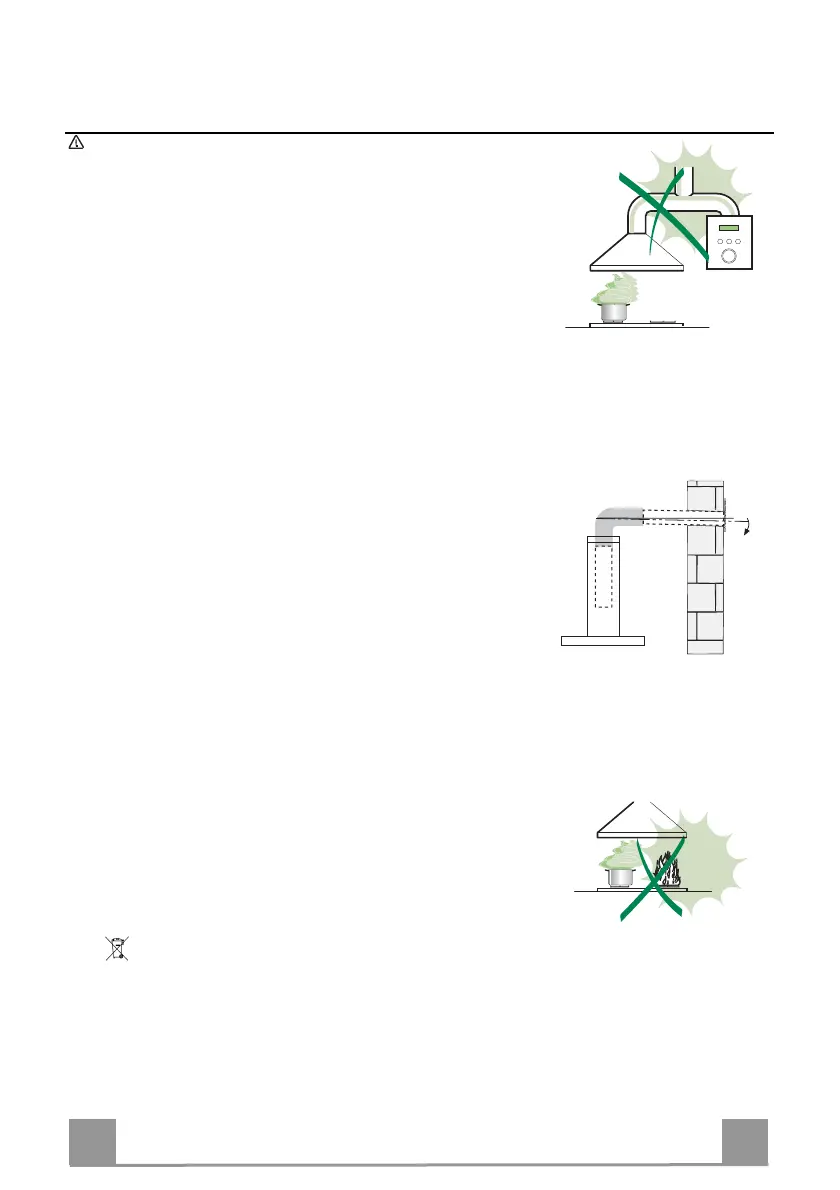 Do not connect the extractor hood to exhaust ducts carrying combustion fumes (boilers, fireplaces,