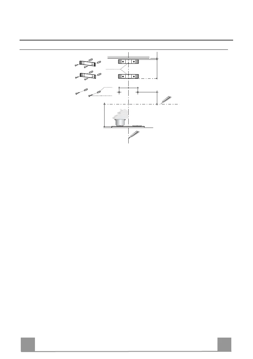 • Draw a horizontal line at 650 mm above the hob. Place bracket 7.2.1 on the wall as shown
