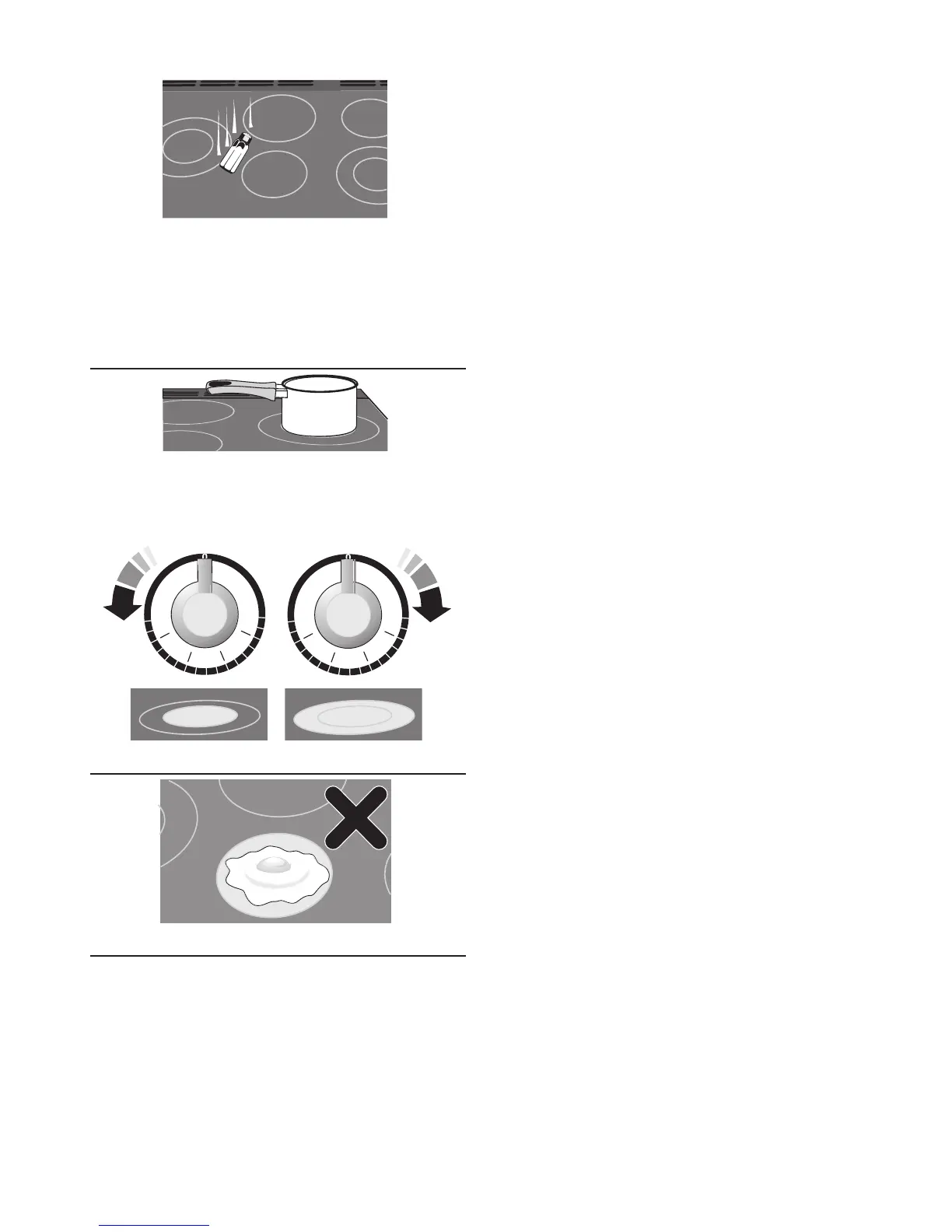 Don’t place utensils partly covering a heating zone.