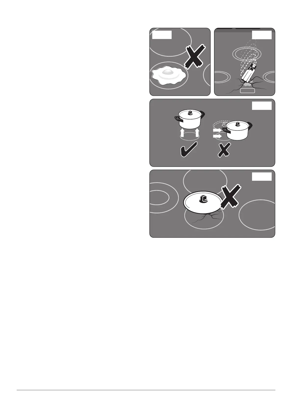 • ALWAYS LIFT pans off the hob. Sliding pans may cause