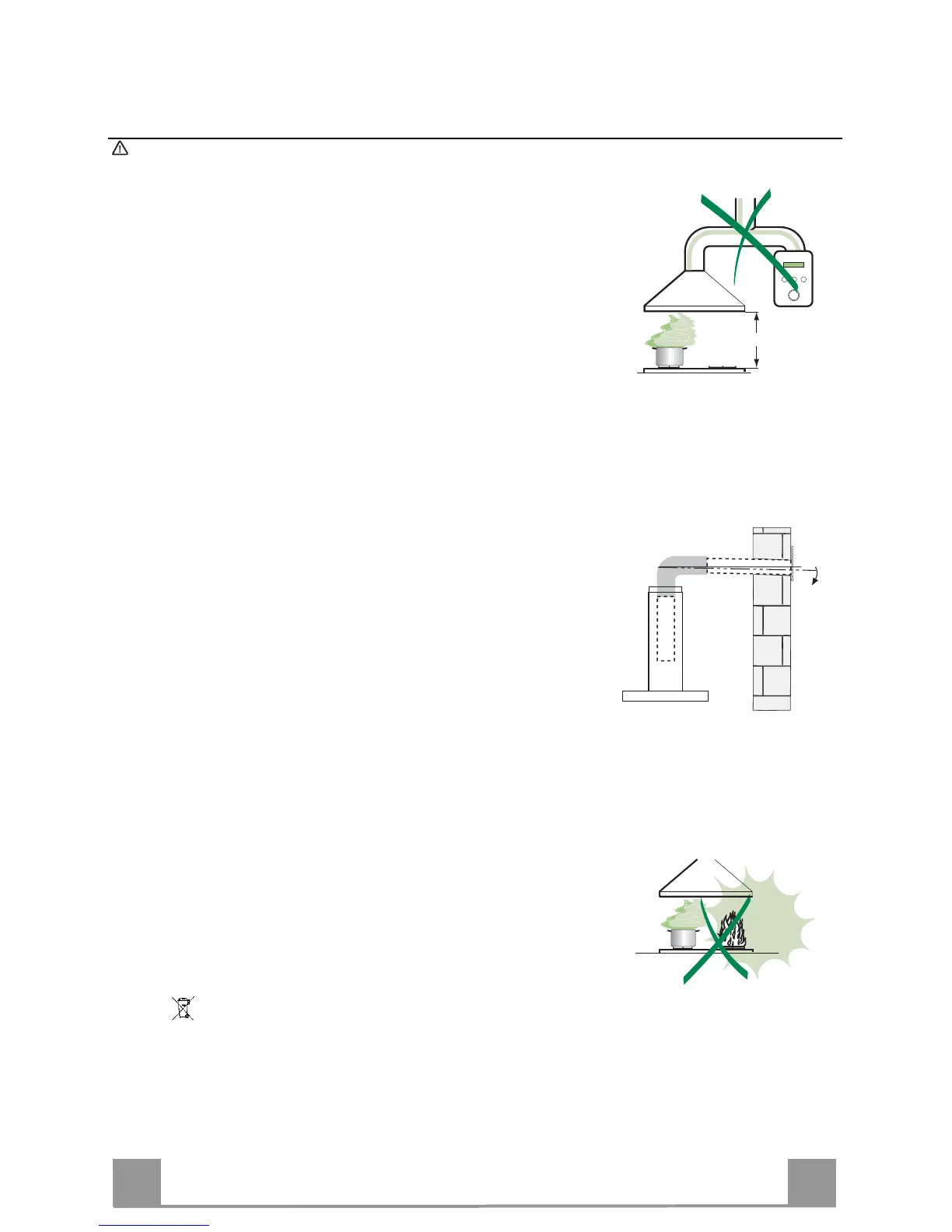• Die Haube darf an keine Entlüftungsschächte angeschlossen werden, in die Verbrennungsgase (Heizkessel,