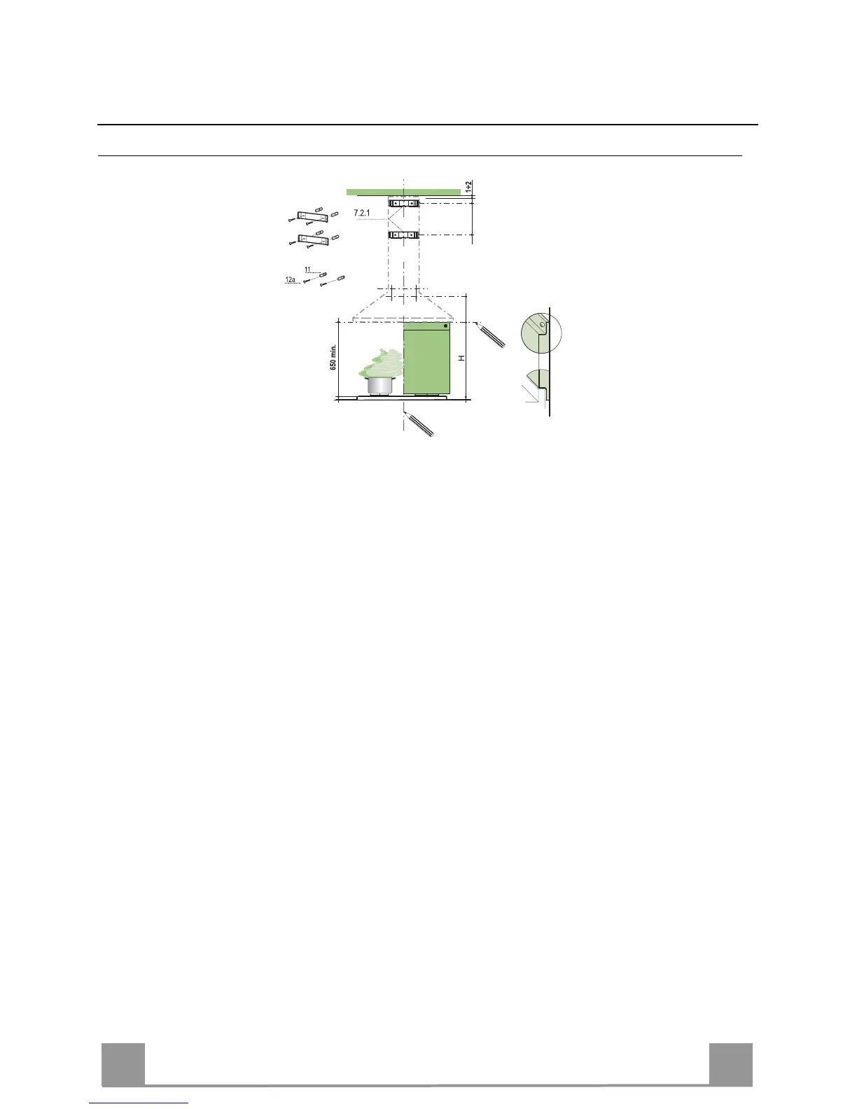 • eine horizontale Linie: mit einem minimalen Abstand von 650 mm zur Kochmulde bei Montage ohne