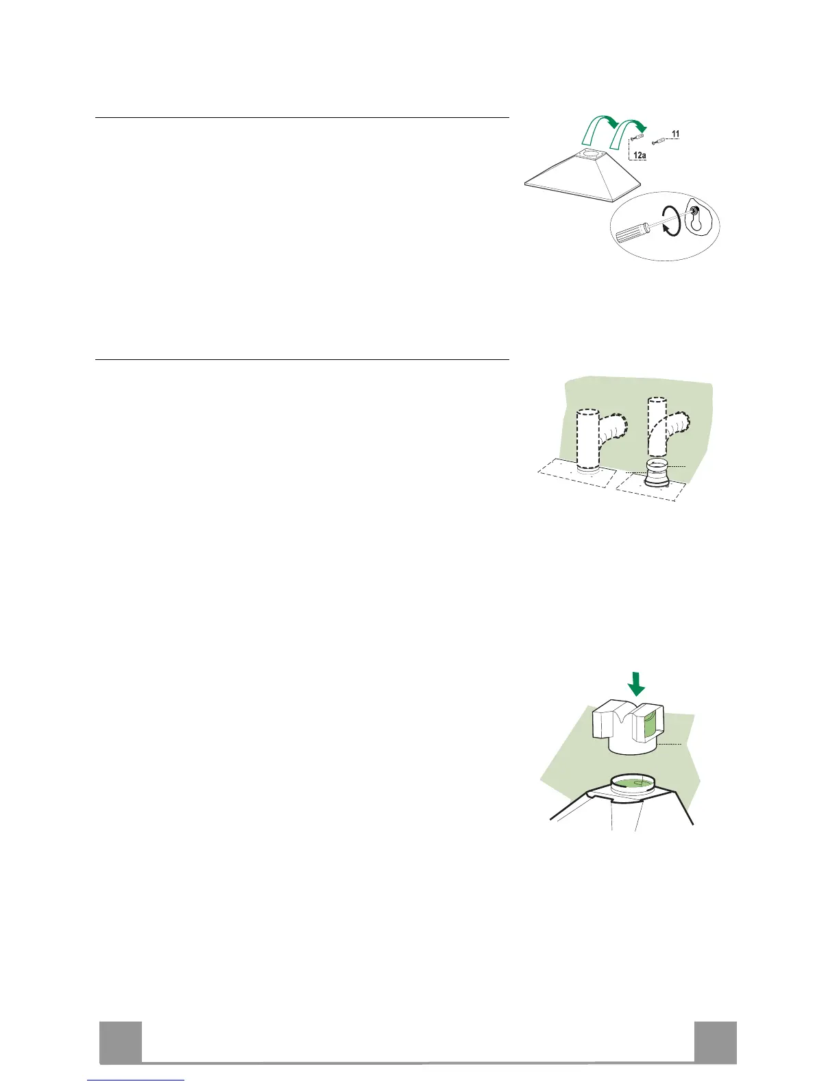 • Den Haubenkörper bei den Schrauben 12a einhängen.
