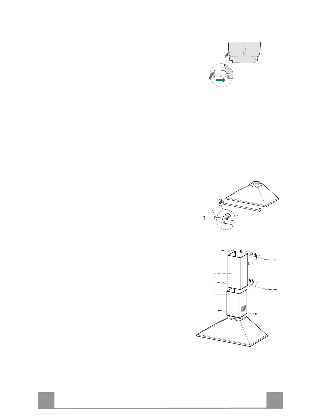 • Die beiden seitlichen Schenkel des Kaminteils leicht aus-
