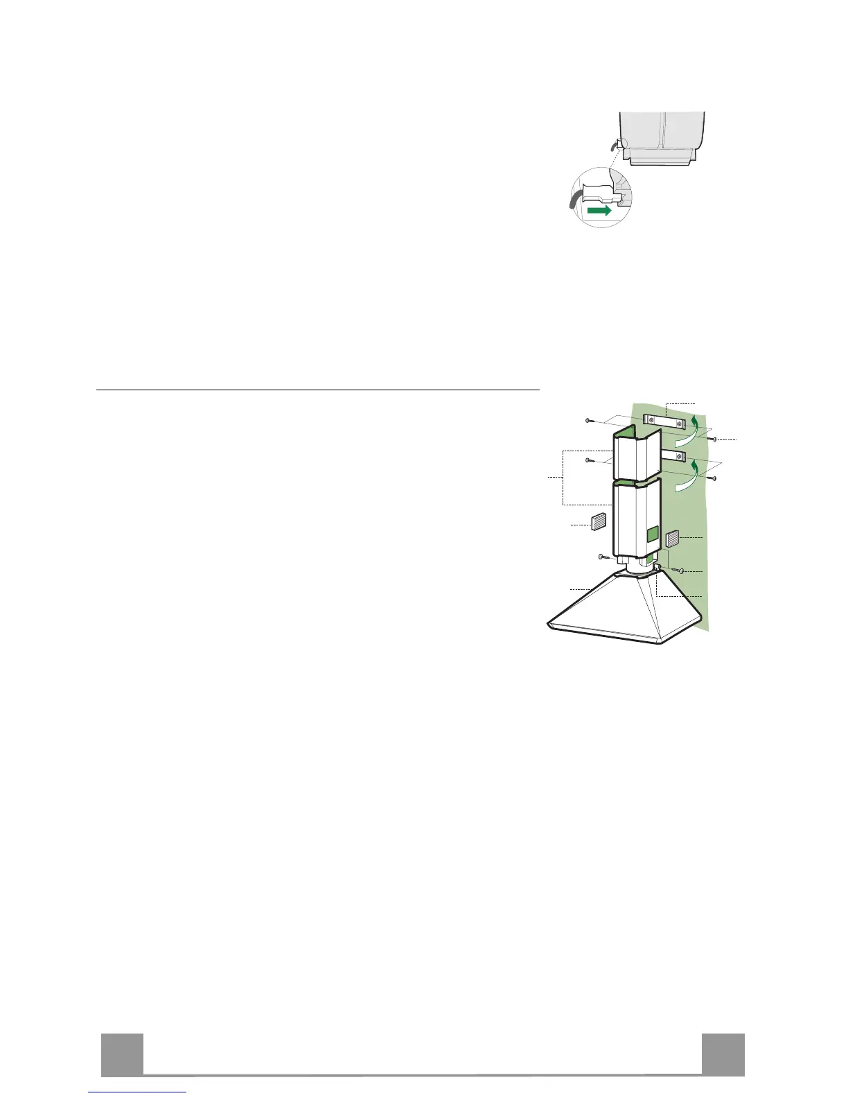 • Insert the lower flue fixing bush 17 in the top of the hood body