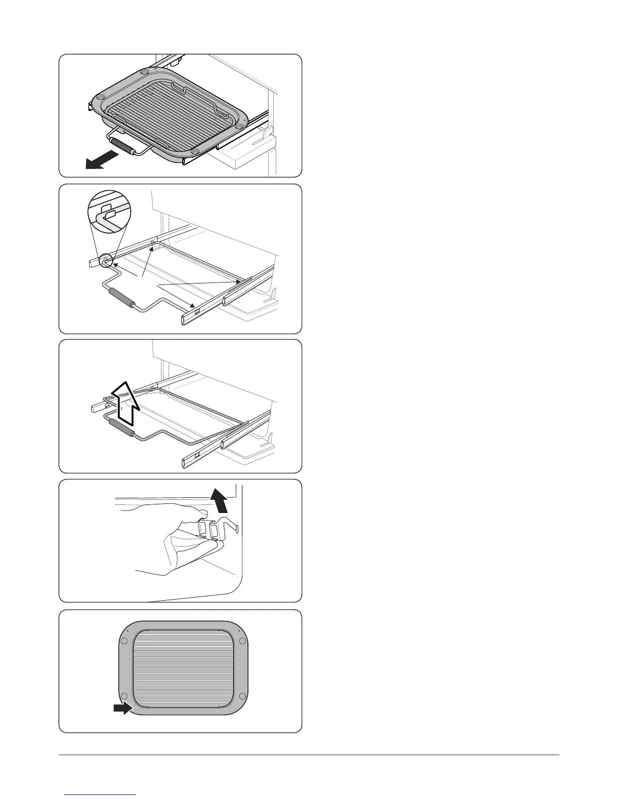 Remove the grill pan support frame by pulling the grill pan
