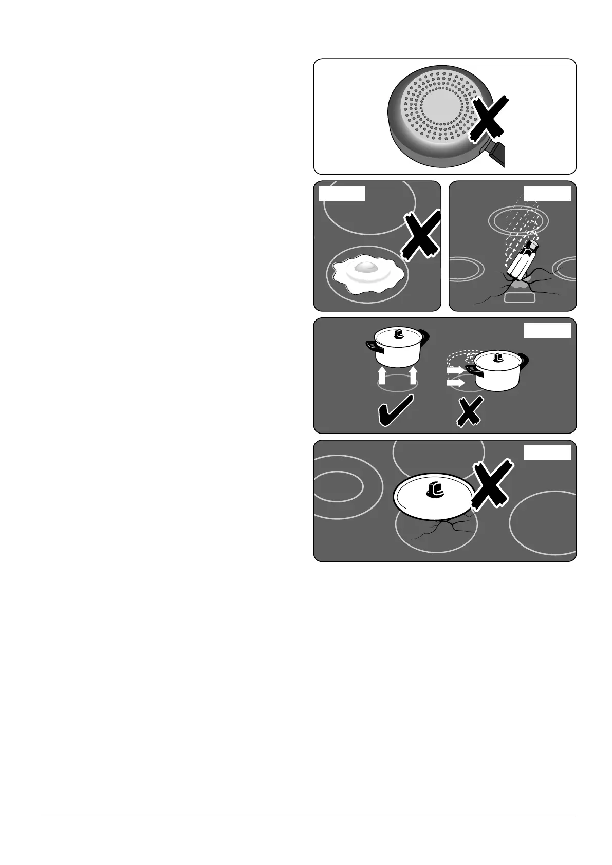 • ALWAYS LIFT cookware off the hob.