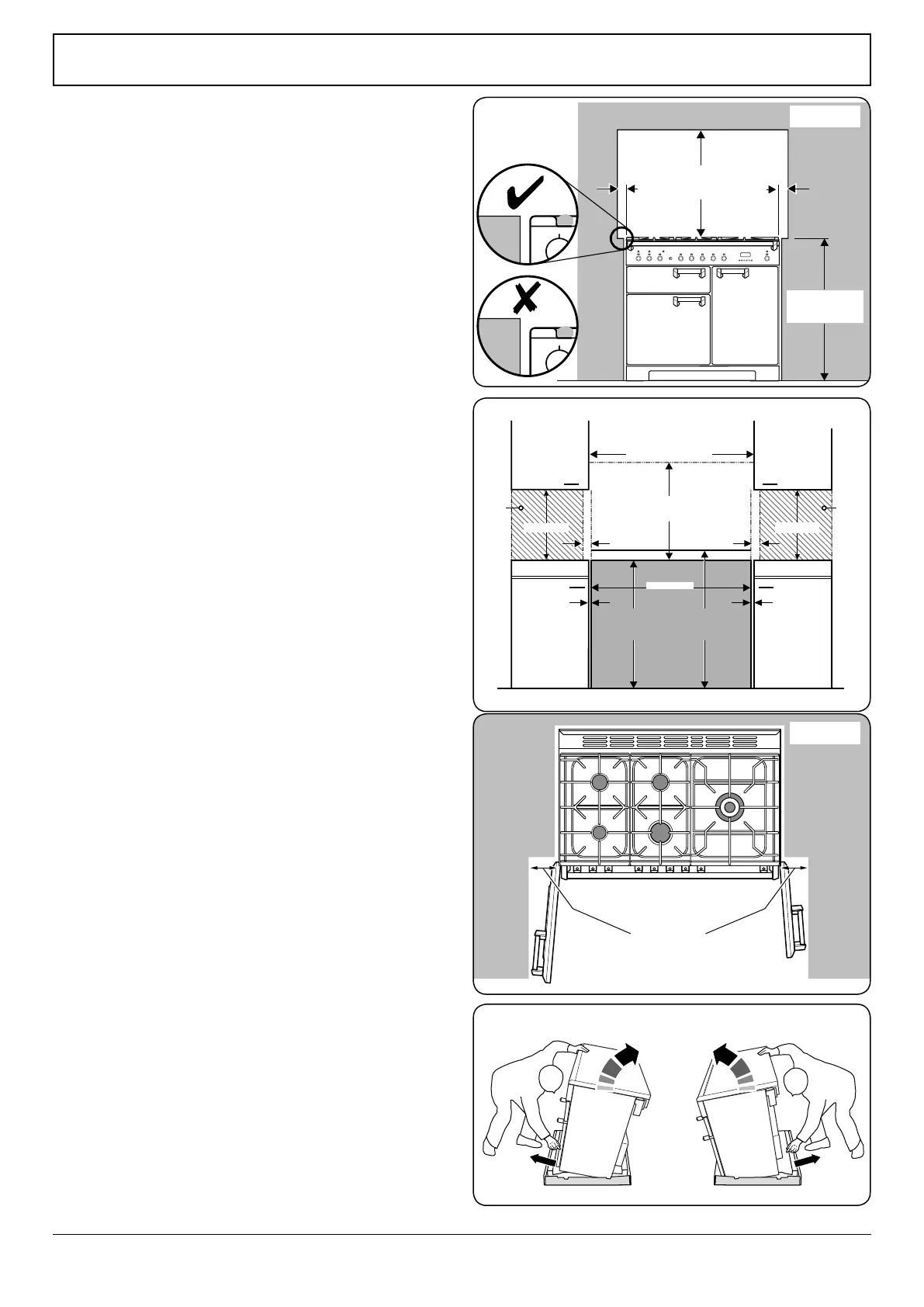Fig. 9.1 and Fig. 9.2 Cookers installed into recess: The cooker