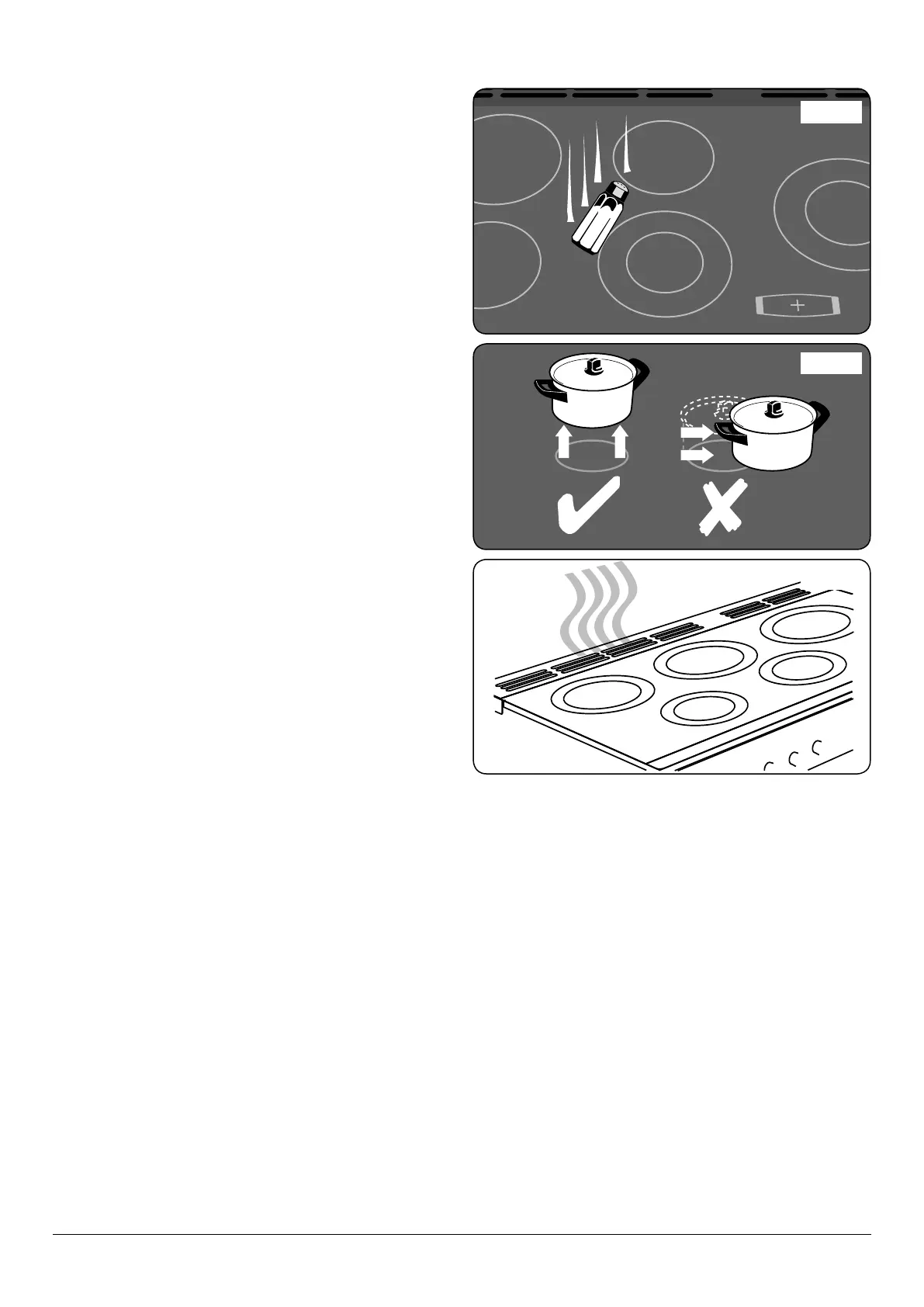 Always LIFT pans o the hob. Sliding pans may cause marks