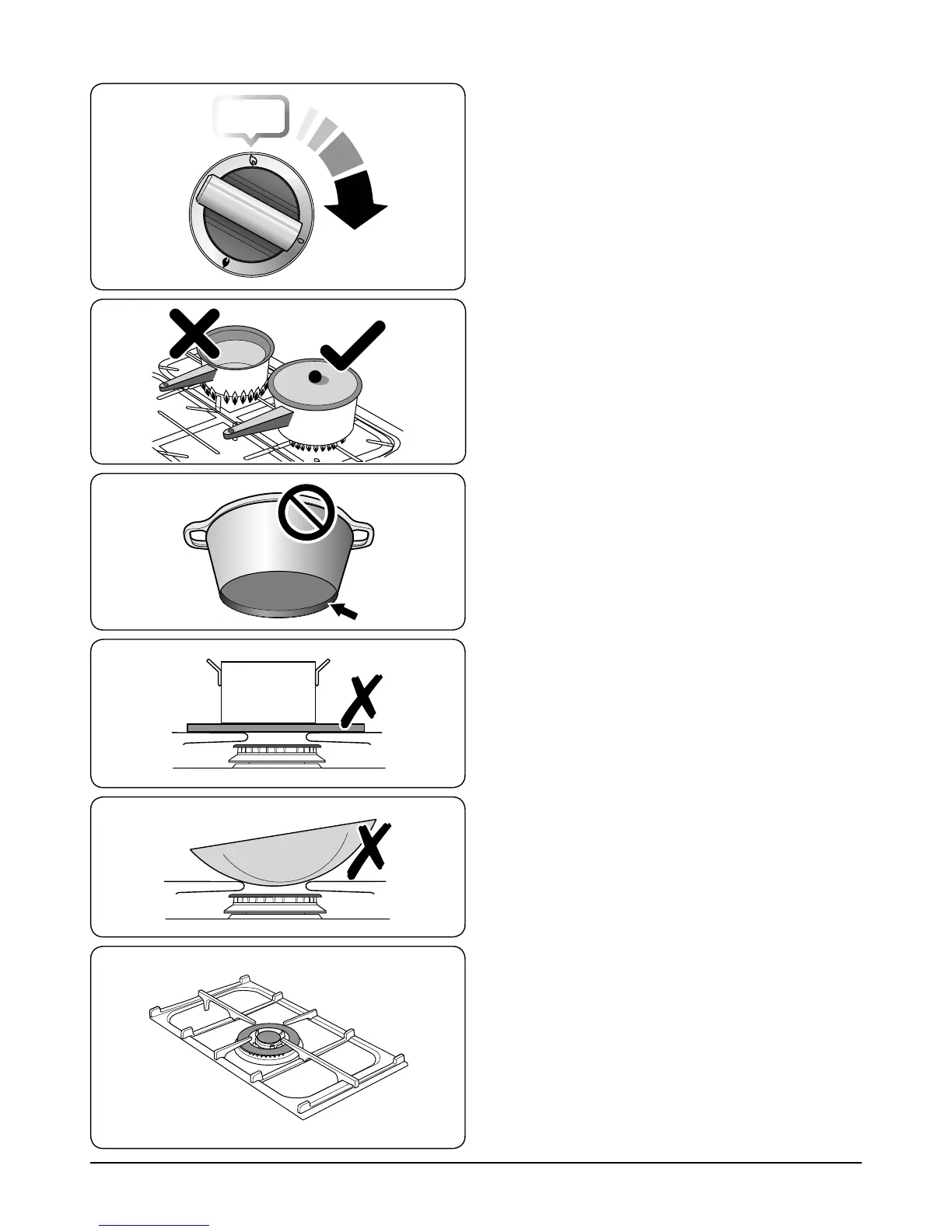 Ensure that the flames are under the pans. Using a lid will