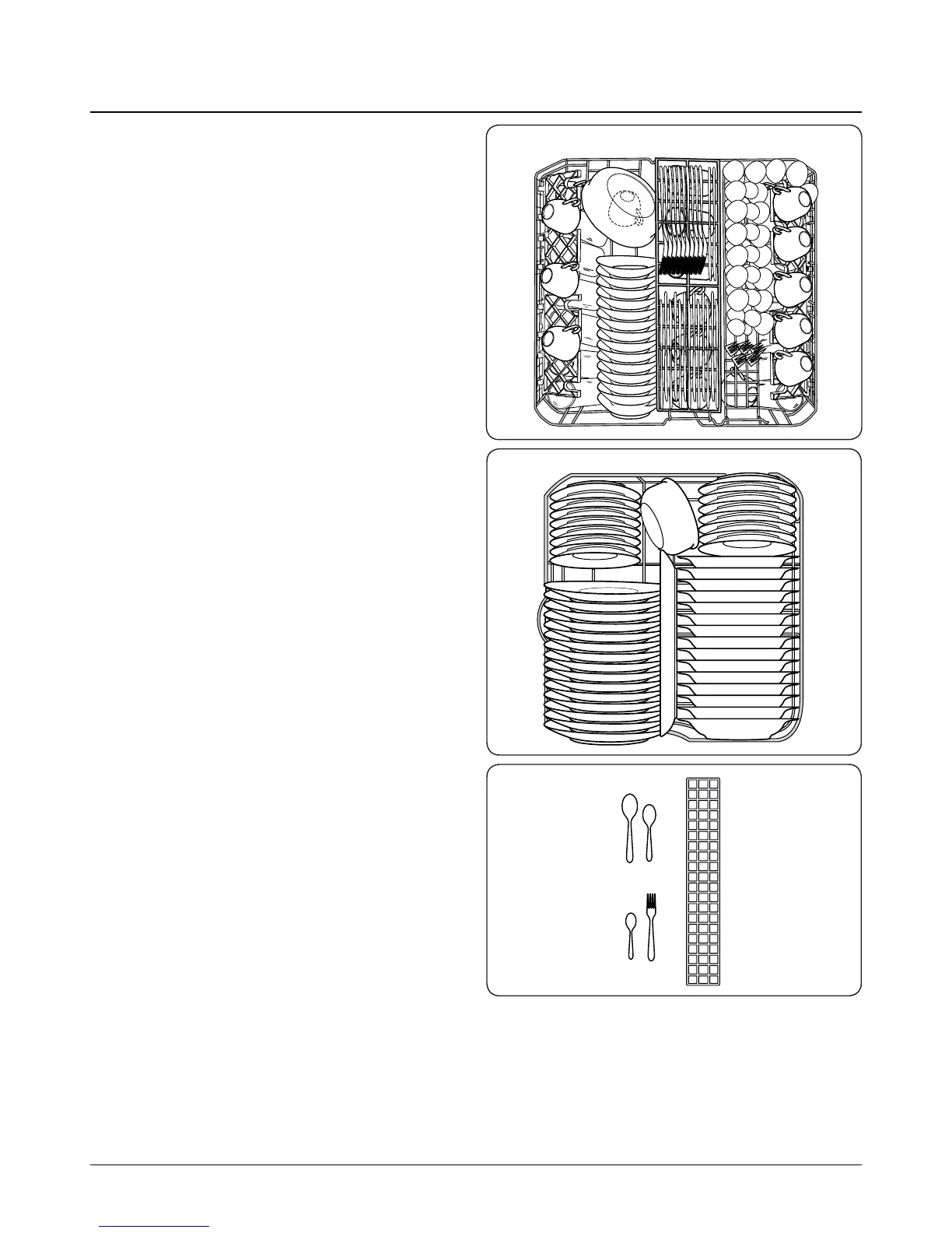 Example of loaded dishwasher: See Figs.(6-1), (6-2) and