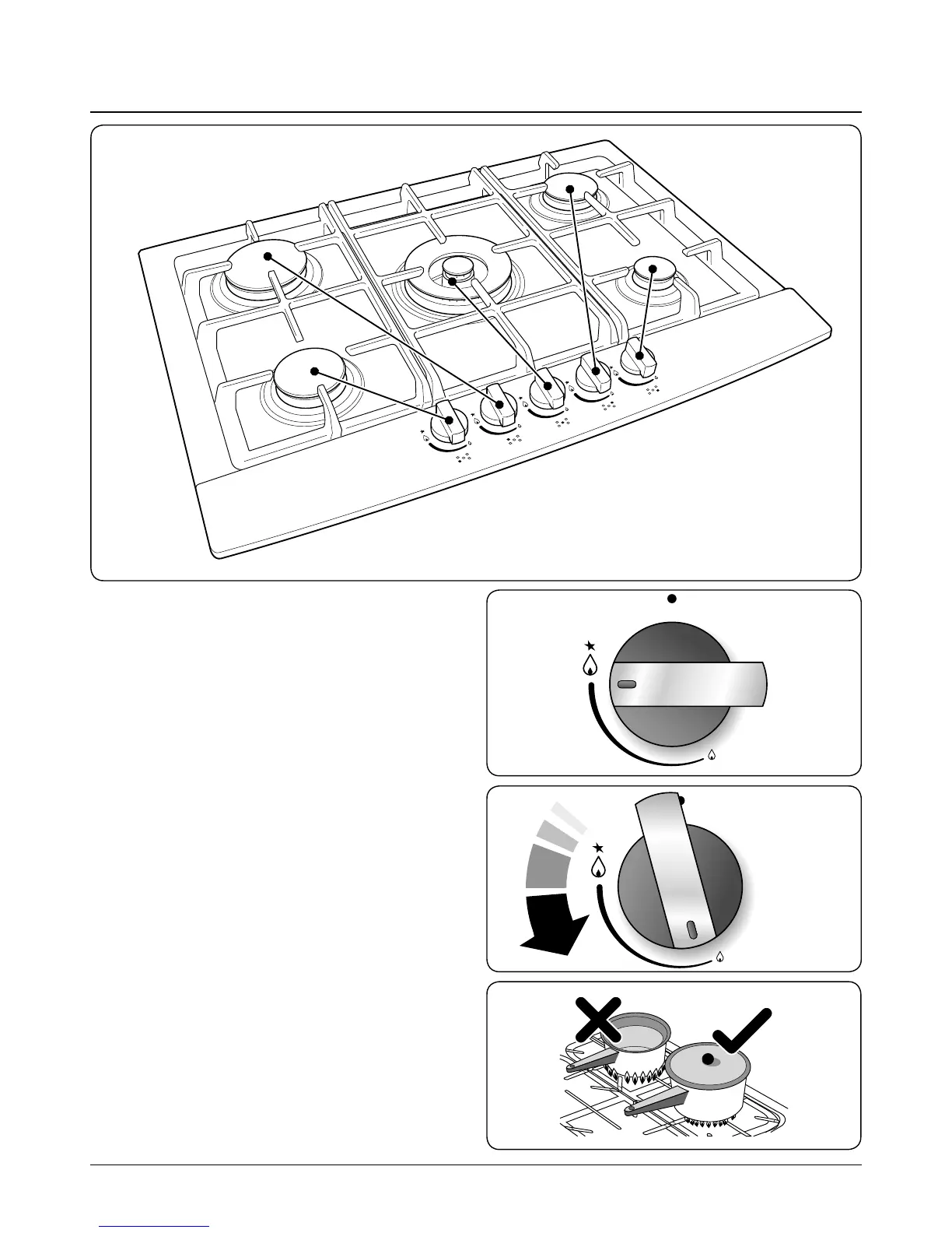 Ensure that the flames are under the pans. Using a lid will