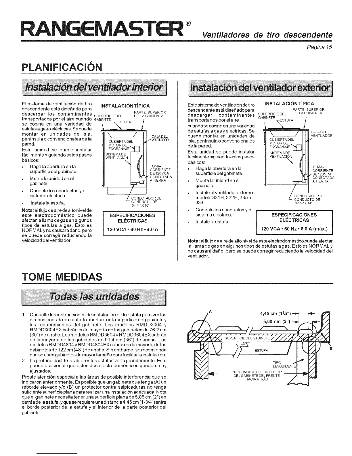 (30") de ancho. Los modelos RM DD3604 y RMDD3604EX cabran