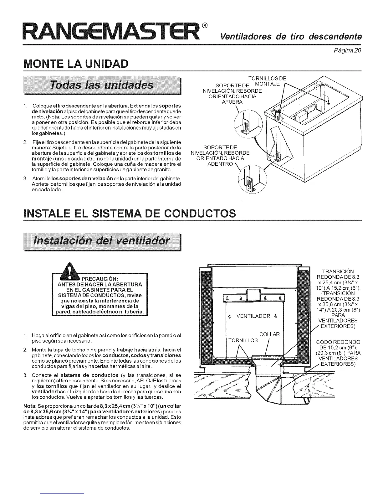 de nivelaci6n al piso del gabinete para que el tiro descendente quede