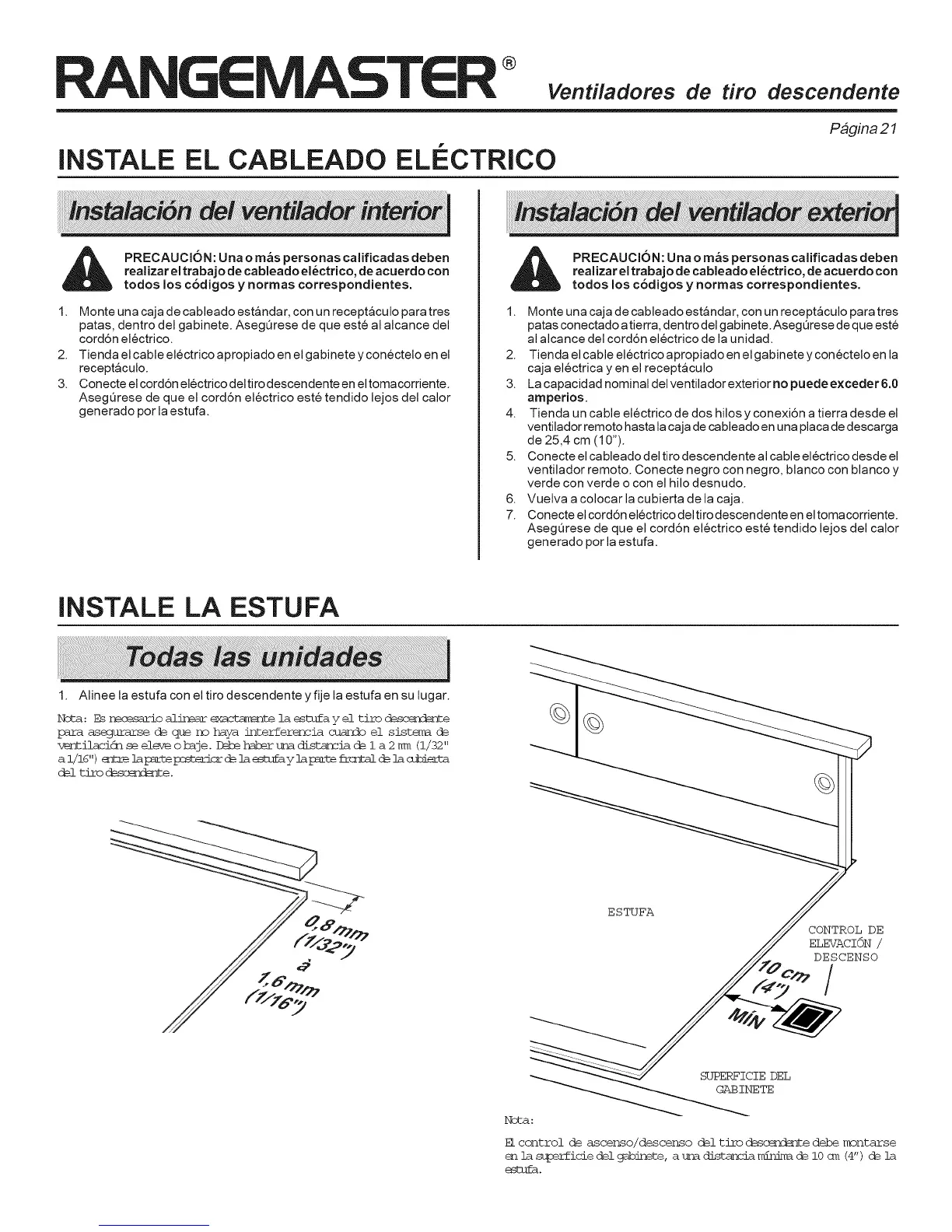 2. Tienda el cable electrico apropiado en el gabinete y con6ctelo en la