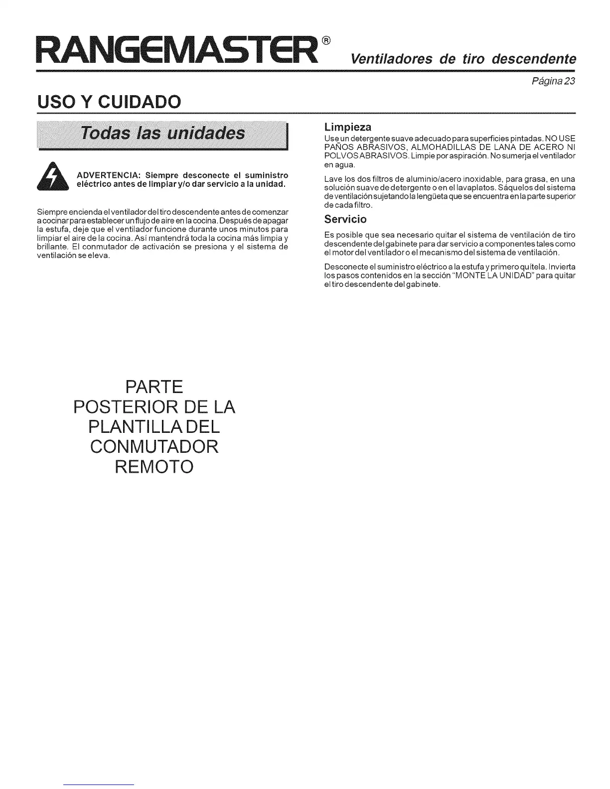 el_ctrico antes de limpiar y/o dar servicio a la unidad.