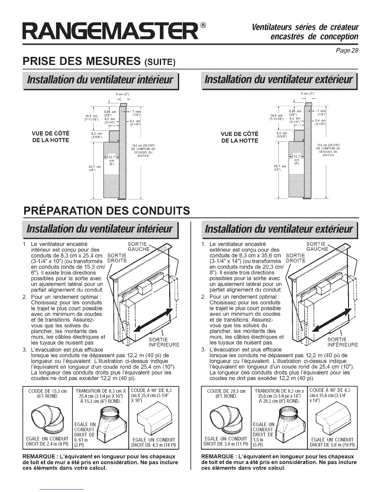 lorsque tes conduits ne depassent pas 12,2 m (40 pi) de