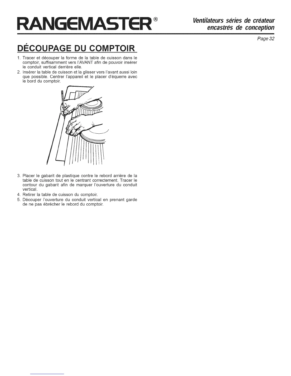 table de cuisson tout en te centrant correctement. Tracer le