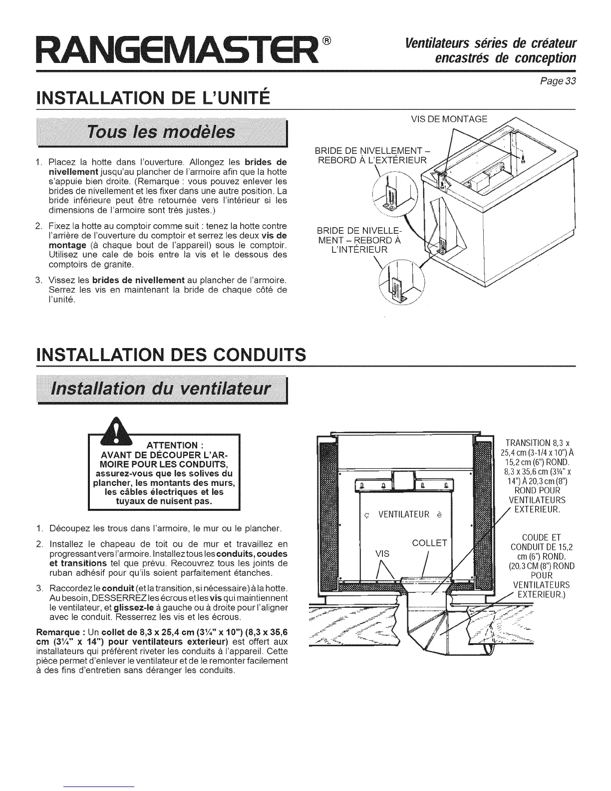 instaltateurs qui preferent riveter les conduits a t'appareit. Cette