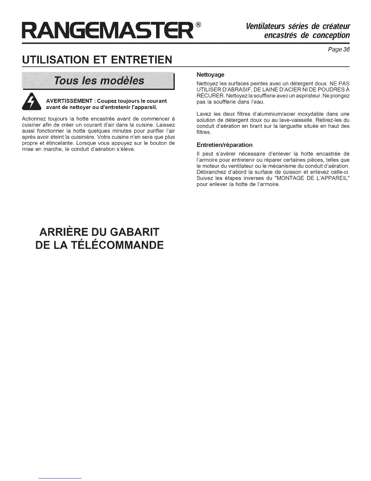 UTILISATION ET ENTRETIEN