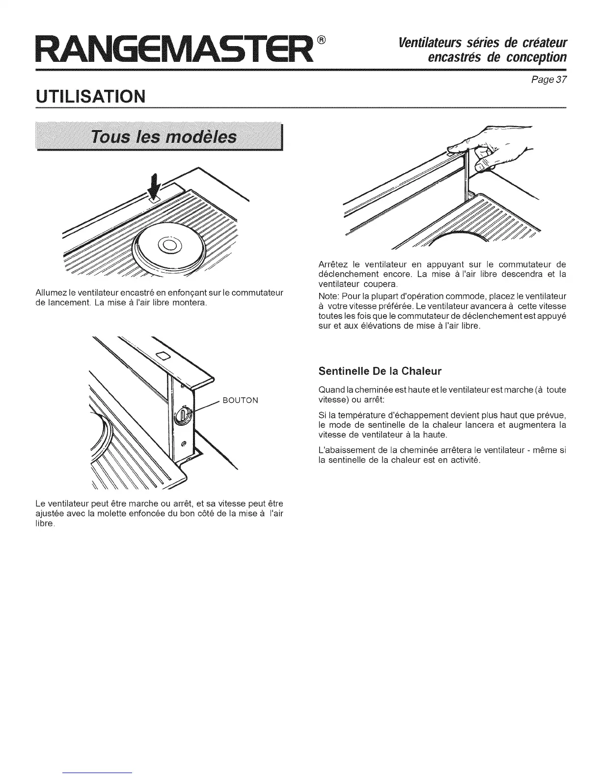 Le ventitateur peut 6tre marche ou arr6t, et sa vitesse peut 6tre