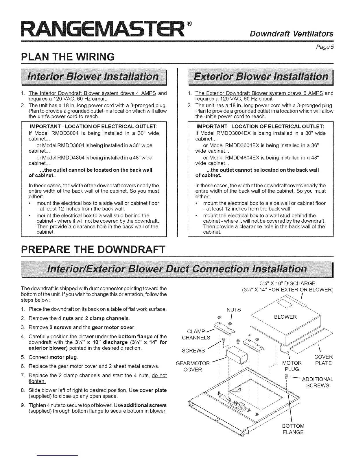 downdraft with the 3¼" x 10" discharge (3¼" x 14" for