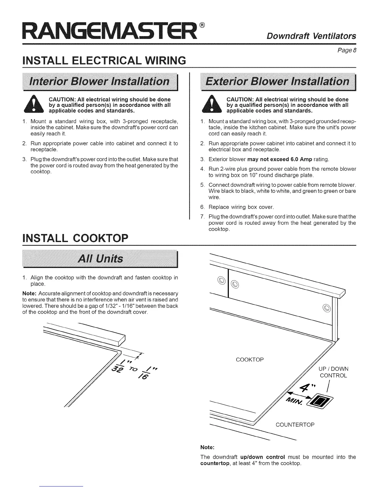 Note: Accurate alignment d cooktop and downdraft is necessary