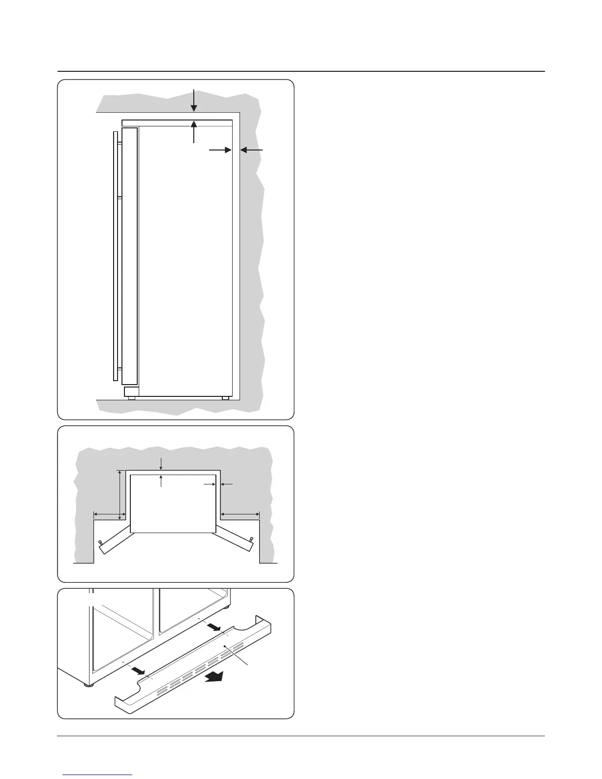 If locating the refrigerator close to a corner, sucient spacing