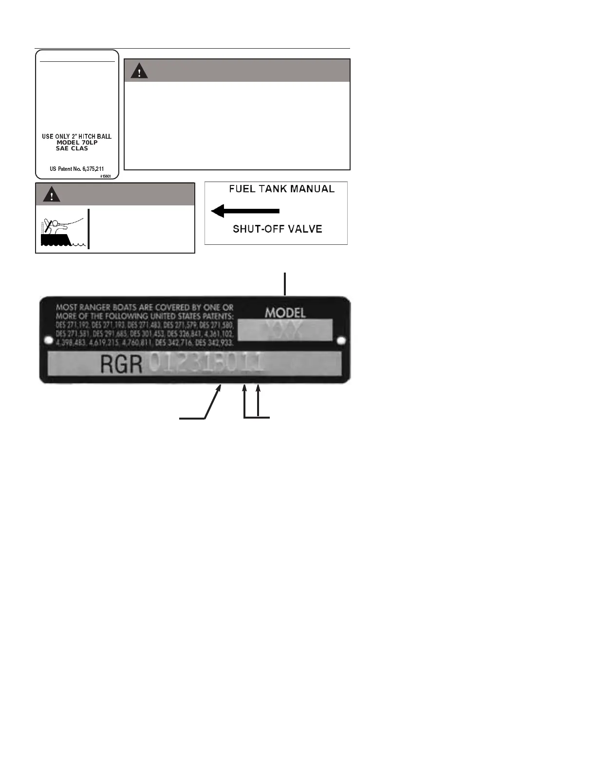 the starboard transom of the boat. Do not alter this plate in any way.