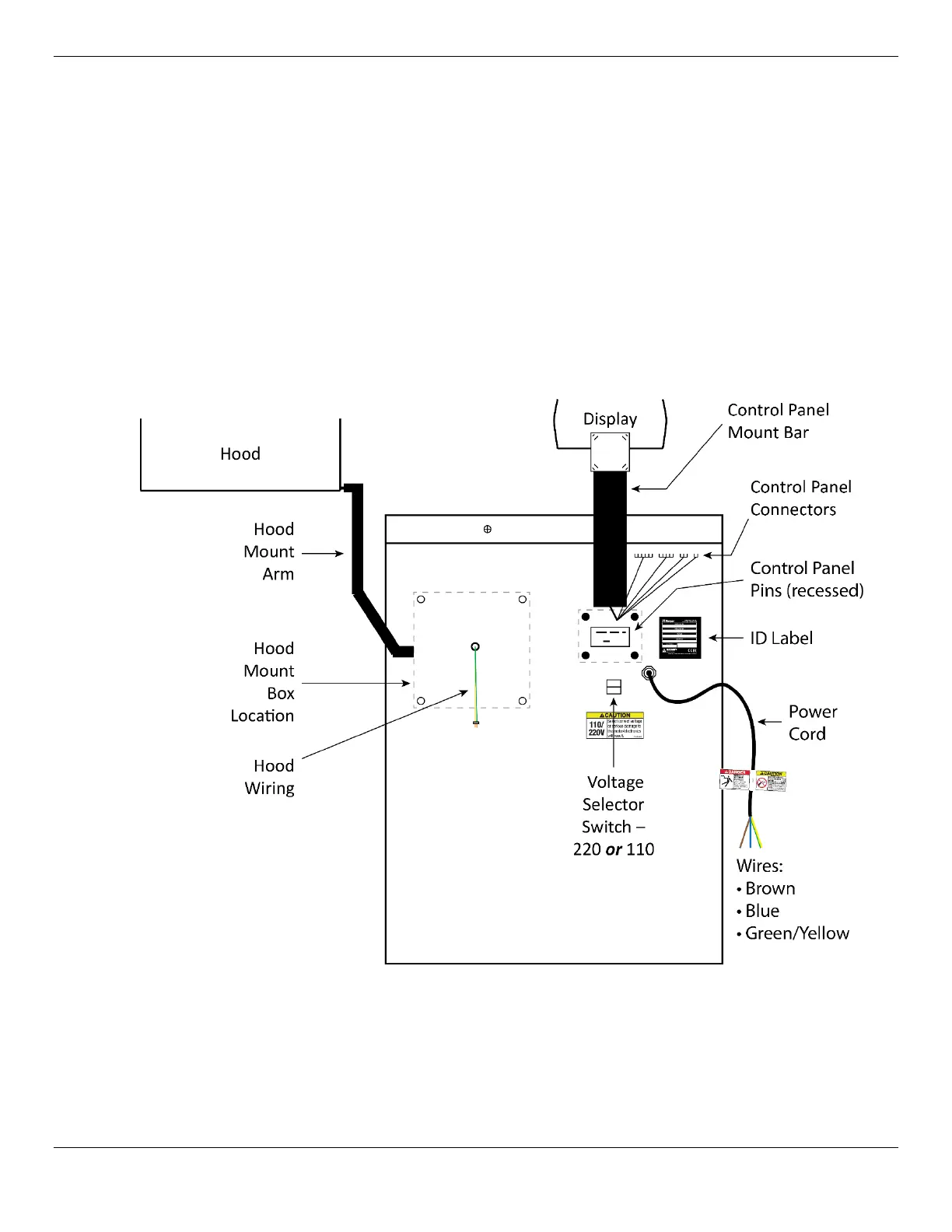 • Hood Mount Box. Connects to the back of the Balancer. Wiring inside the Hood Mount Box