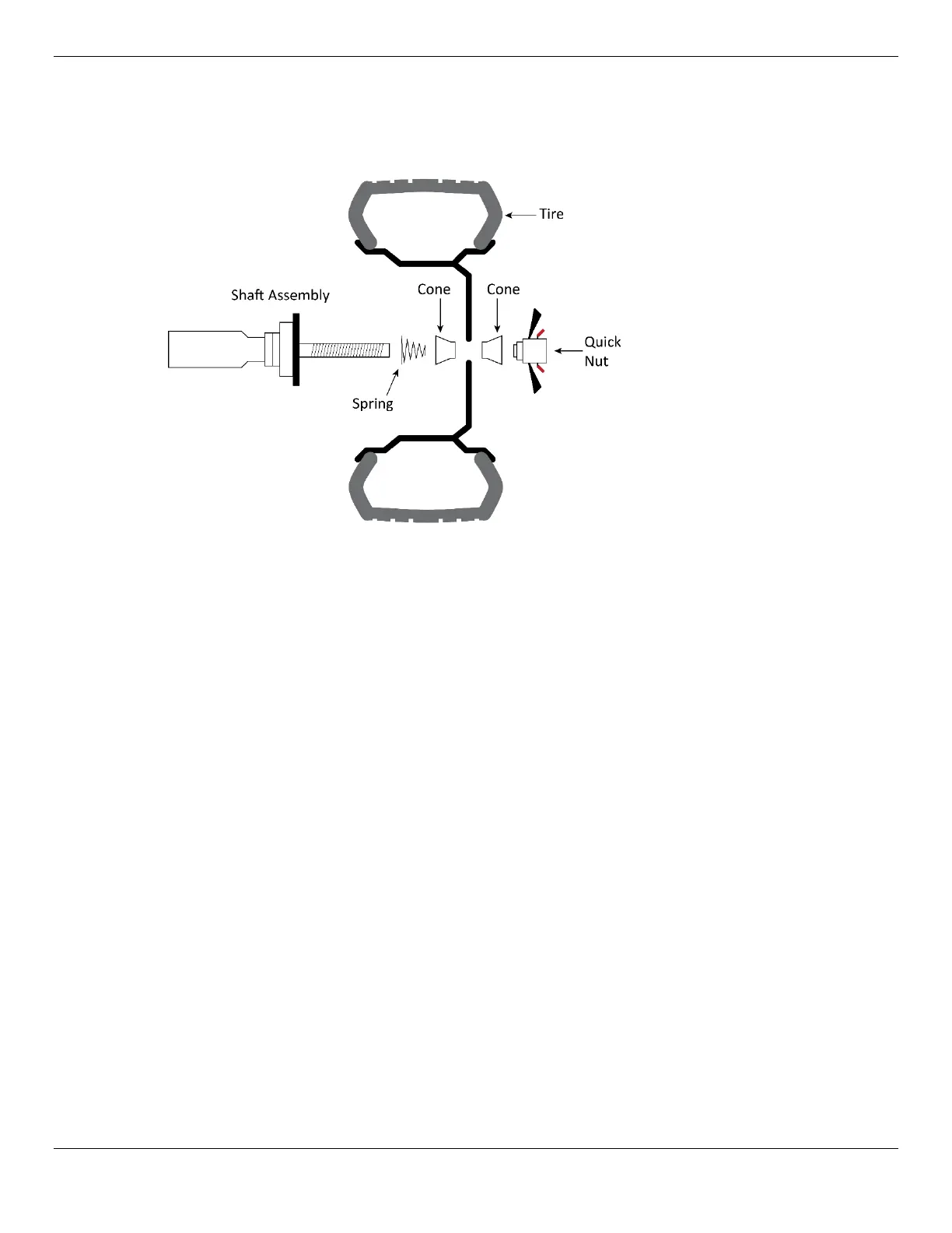 7. While holding the Wheel and other hardware in place, slide the Quick Nut over the Shaft while