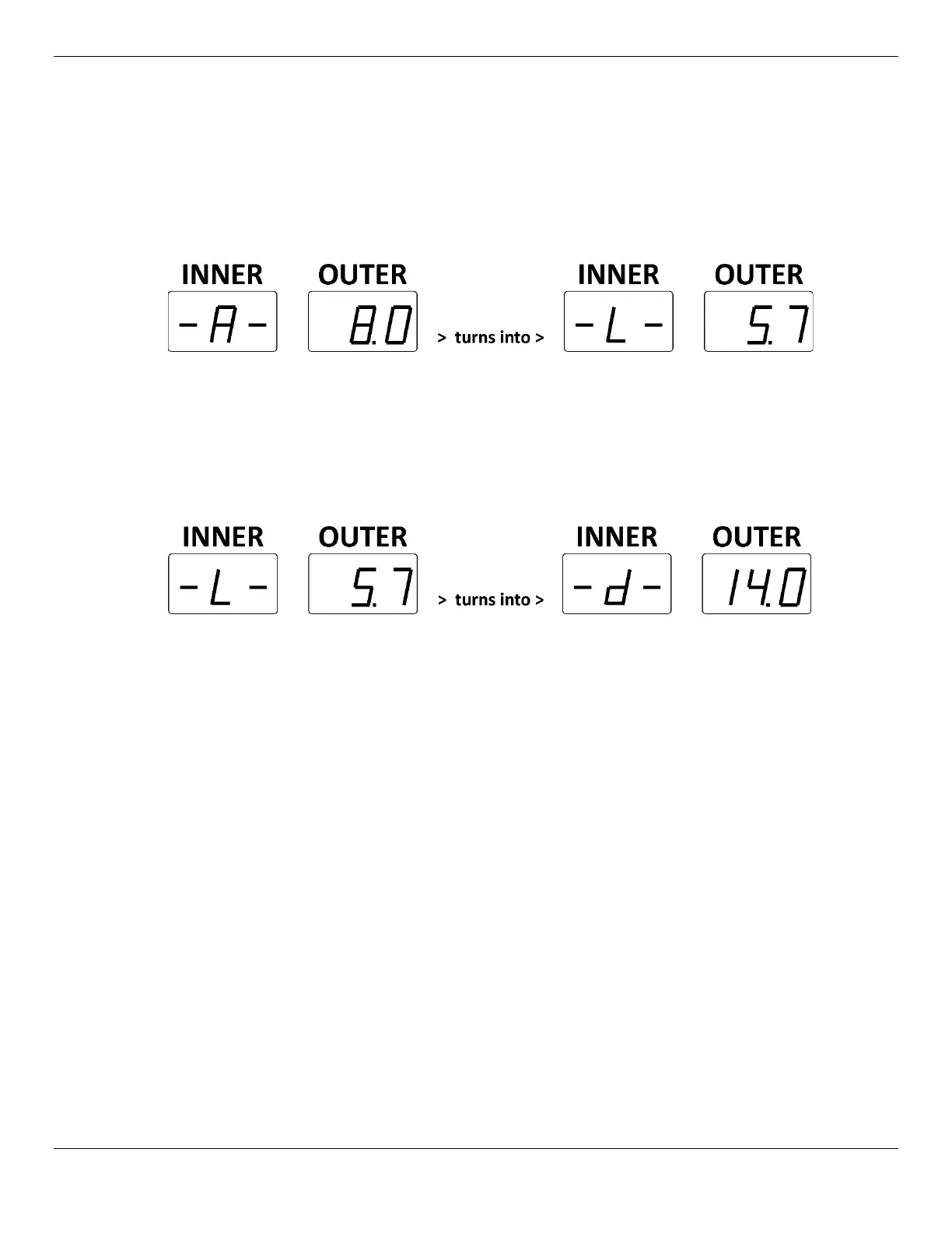 from –L– to –d– and displays the value 14.0 in the Outer Window.