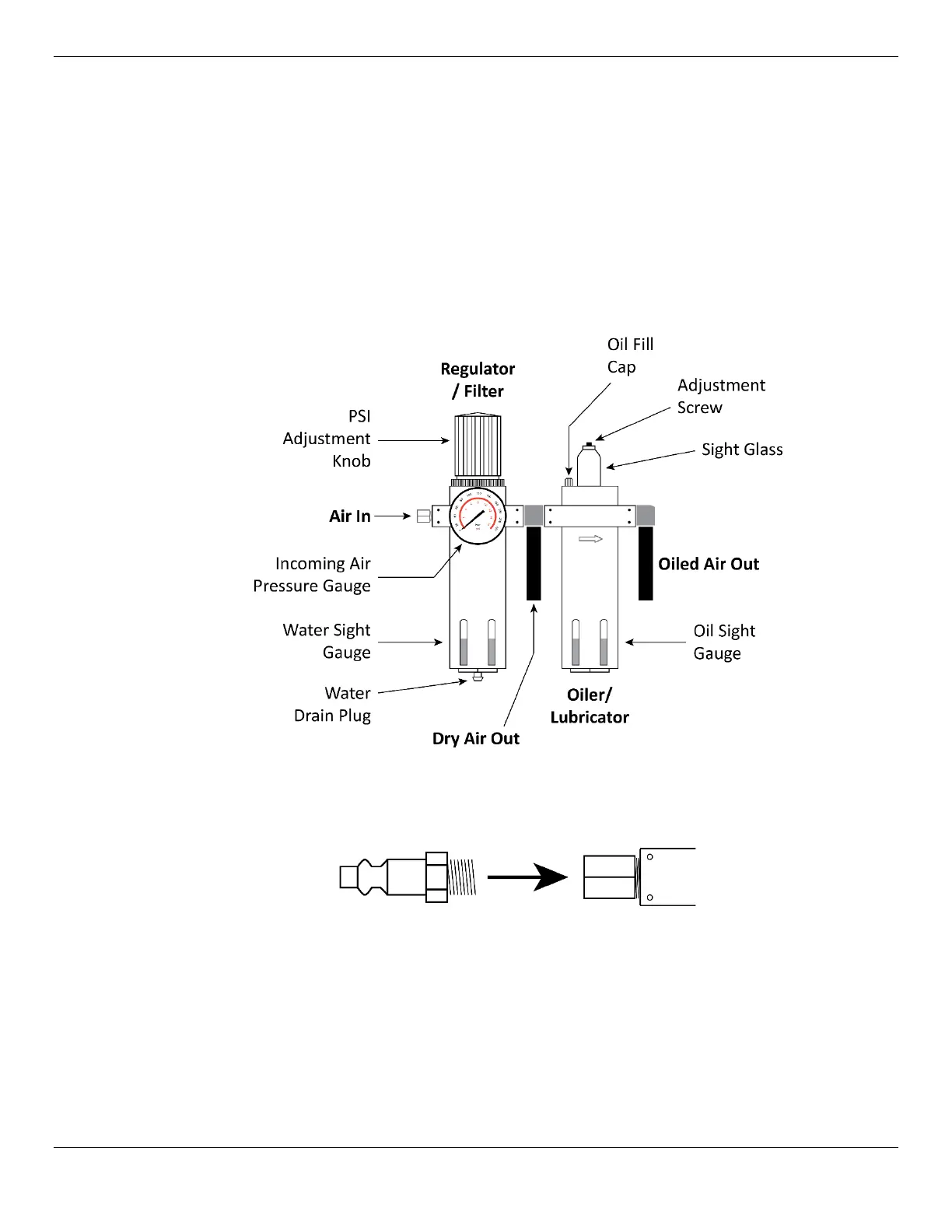 The air lines going out of the Regulator/Filter and Oiler/Lubricator come connected and ready for use;