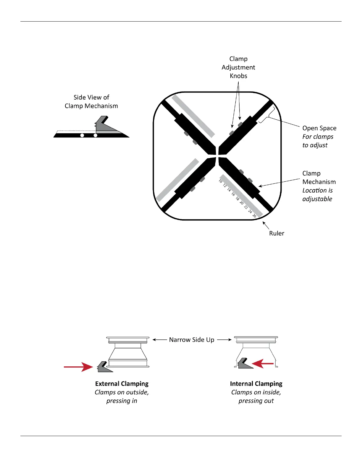 • Clamp Mechanism. Each Clamp mechanism includes a Clamp and two Clamp Adjustment