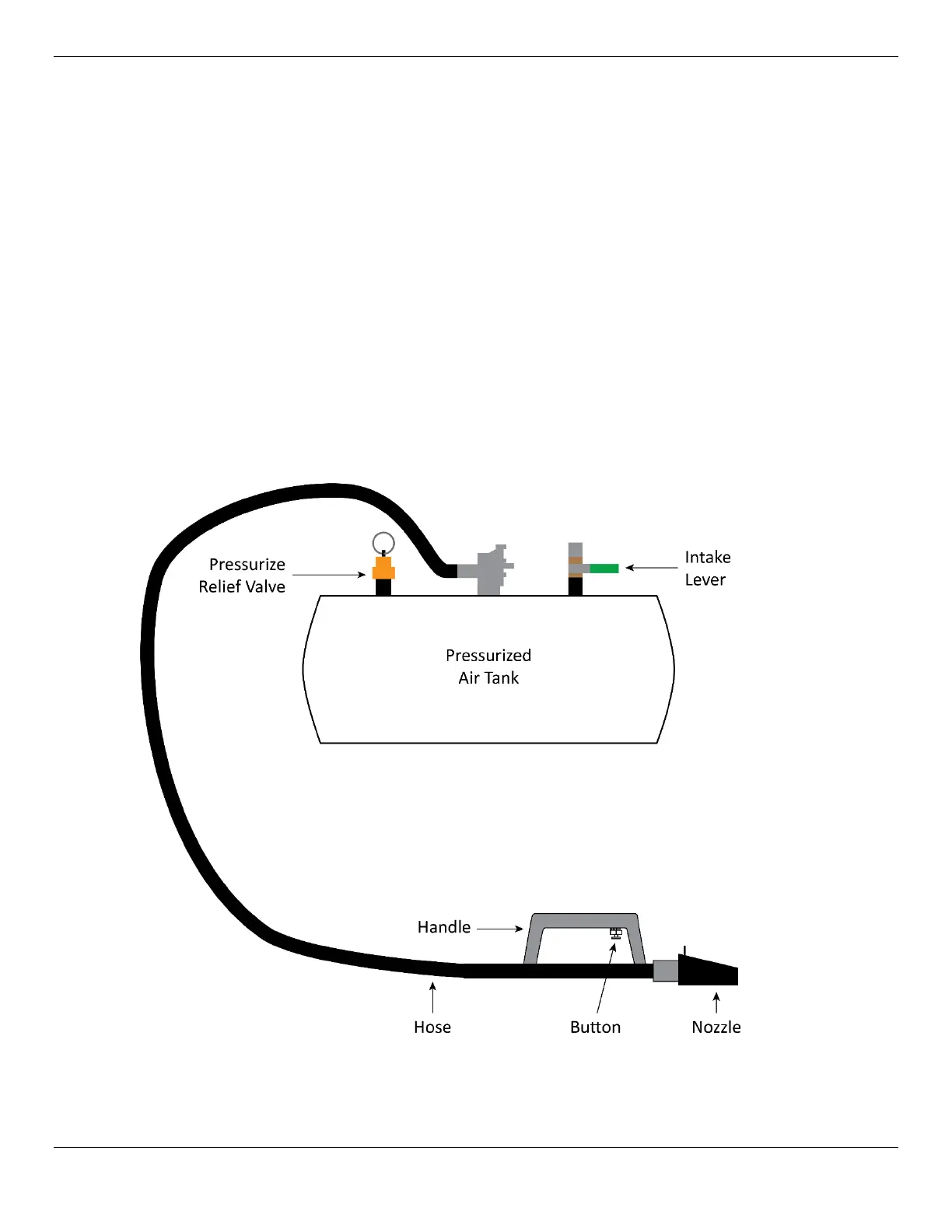 • Hose. Moves the pressurized air from the tank to the Nozzle.