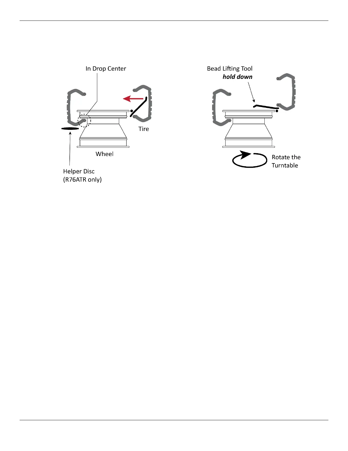 Getting the Bead Lifting Tool into position may be trickier this time, as the rest of the Tire could be