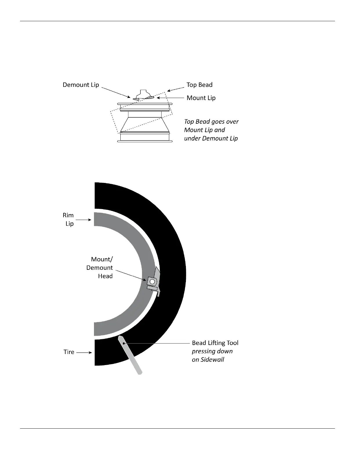 Tire Bead over the Mount Lip and under the Demount Lip.