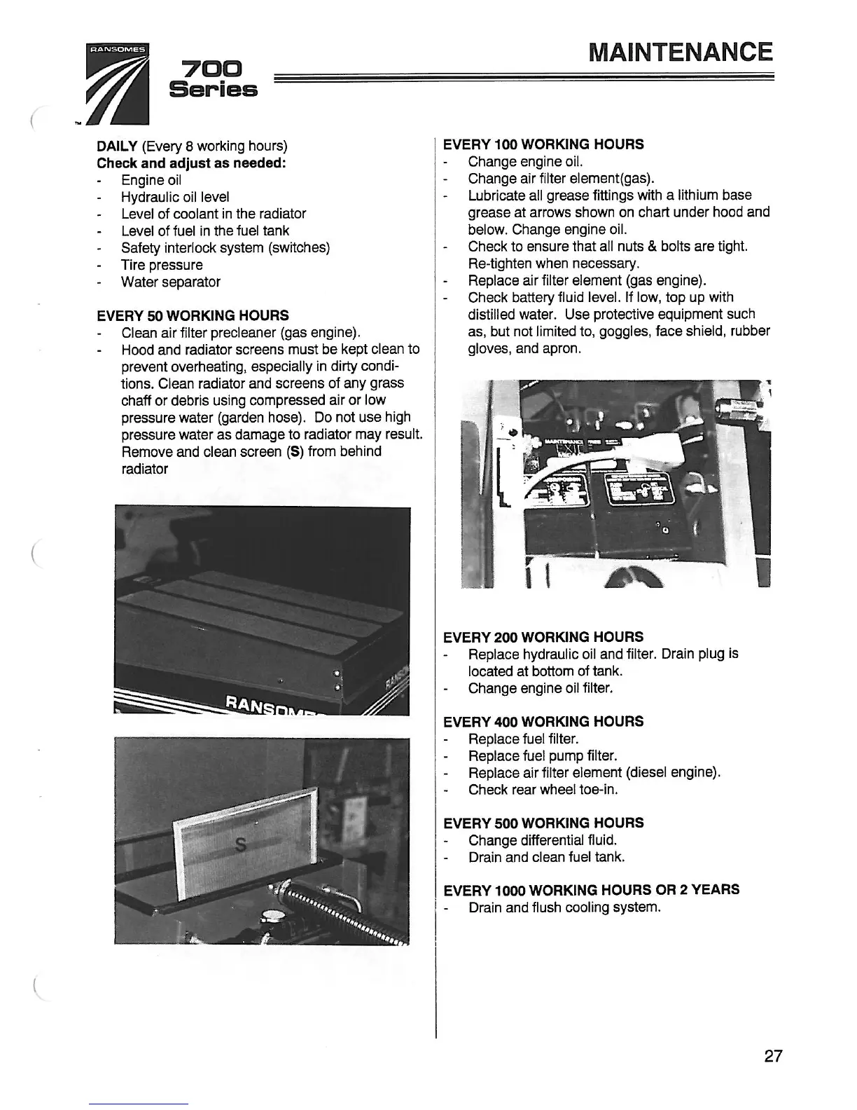 Ransomes 946700 - MAINTENANCE SCHEDULE