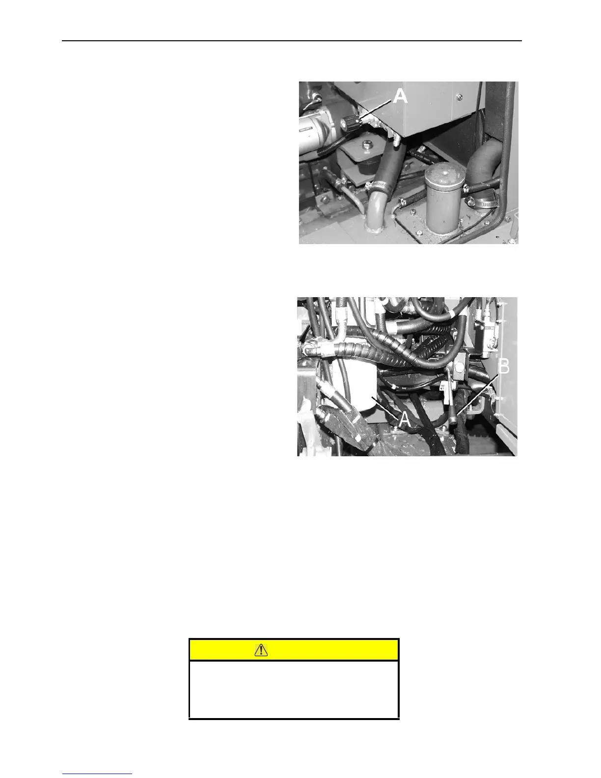 La soupape de sûreté des freins (B Schéma 7.10.2) se trouve sous la plateforme de l’opérateur et la porte droite