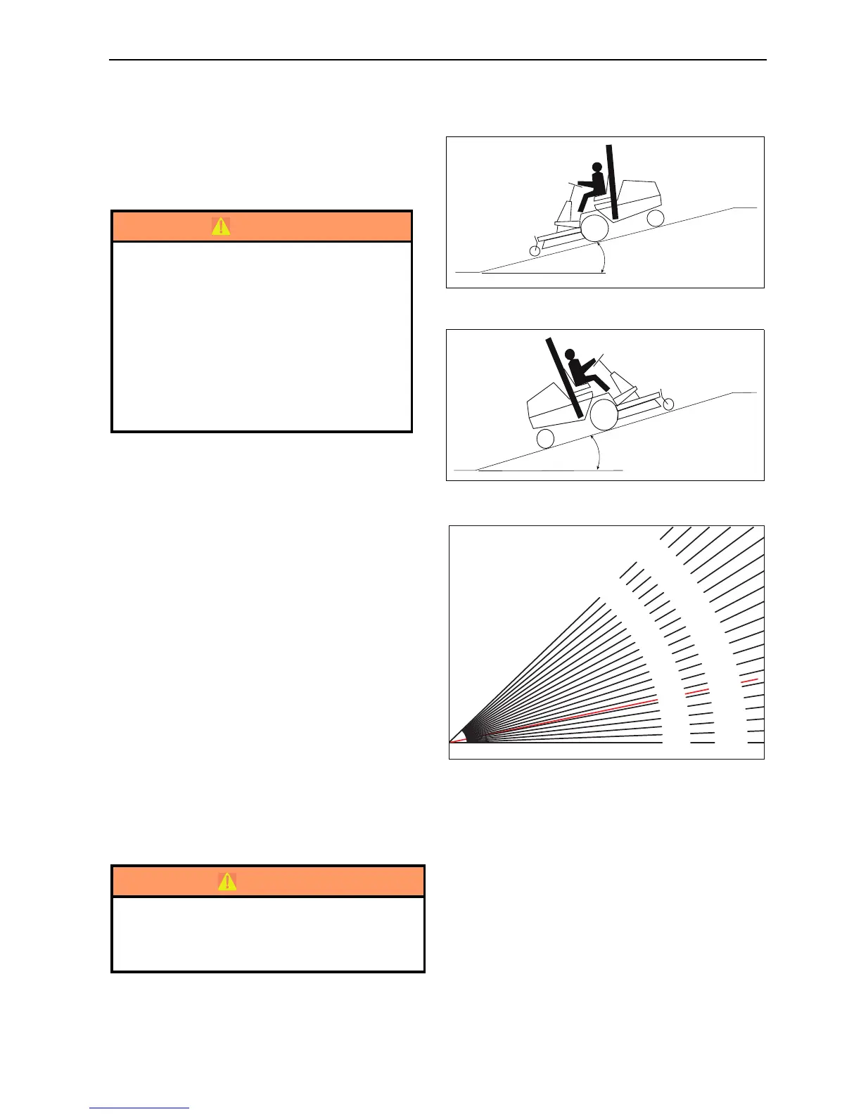 slope is too steep for safe operation. Do not make