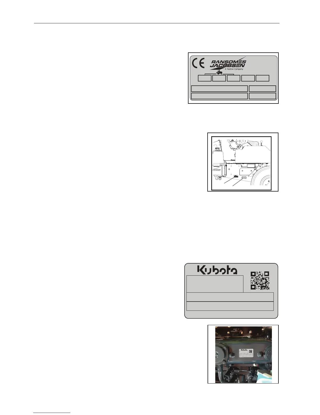 front of the mower. Label shows the engine group and serial number.