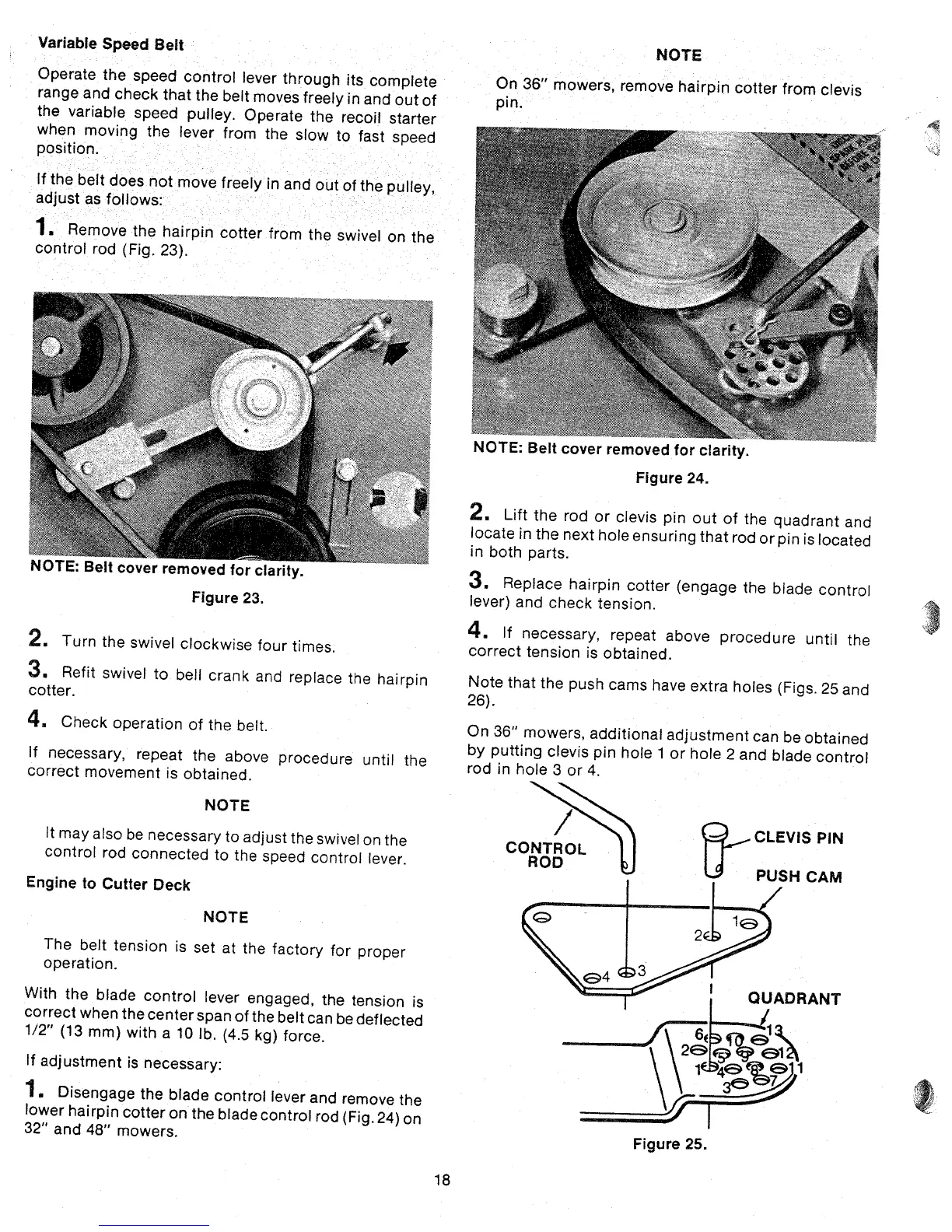 Ransomes M36 - BELT TENSIONS; Variable Speed Belt Tension; Engine to Cutter Deck Belt Tension