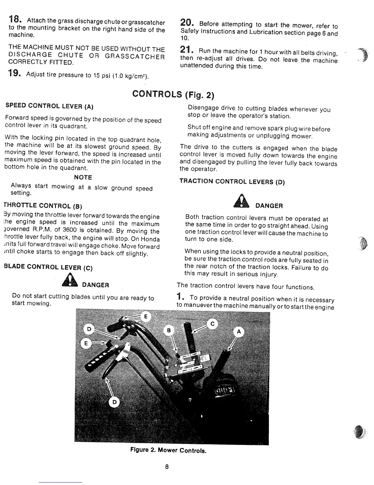 Ransomes M36 - CONTROLS; Speed Control Lever; Throttle Control; Blade Control Lever