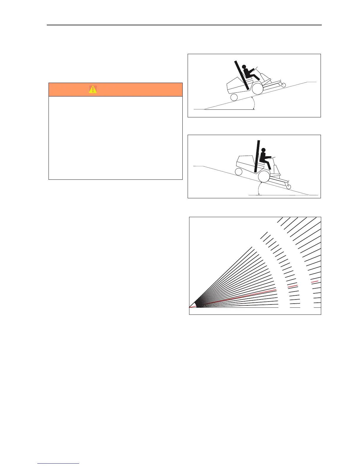 slope is too steep for safe operation. Do not make