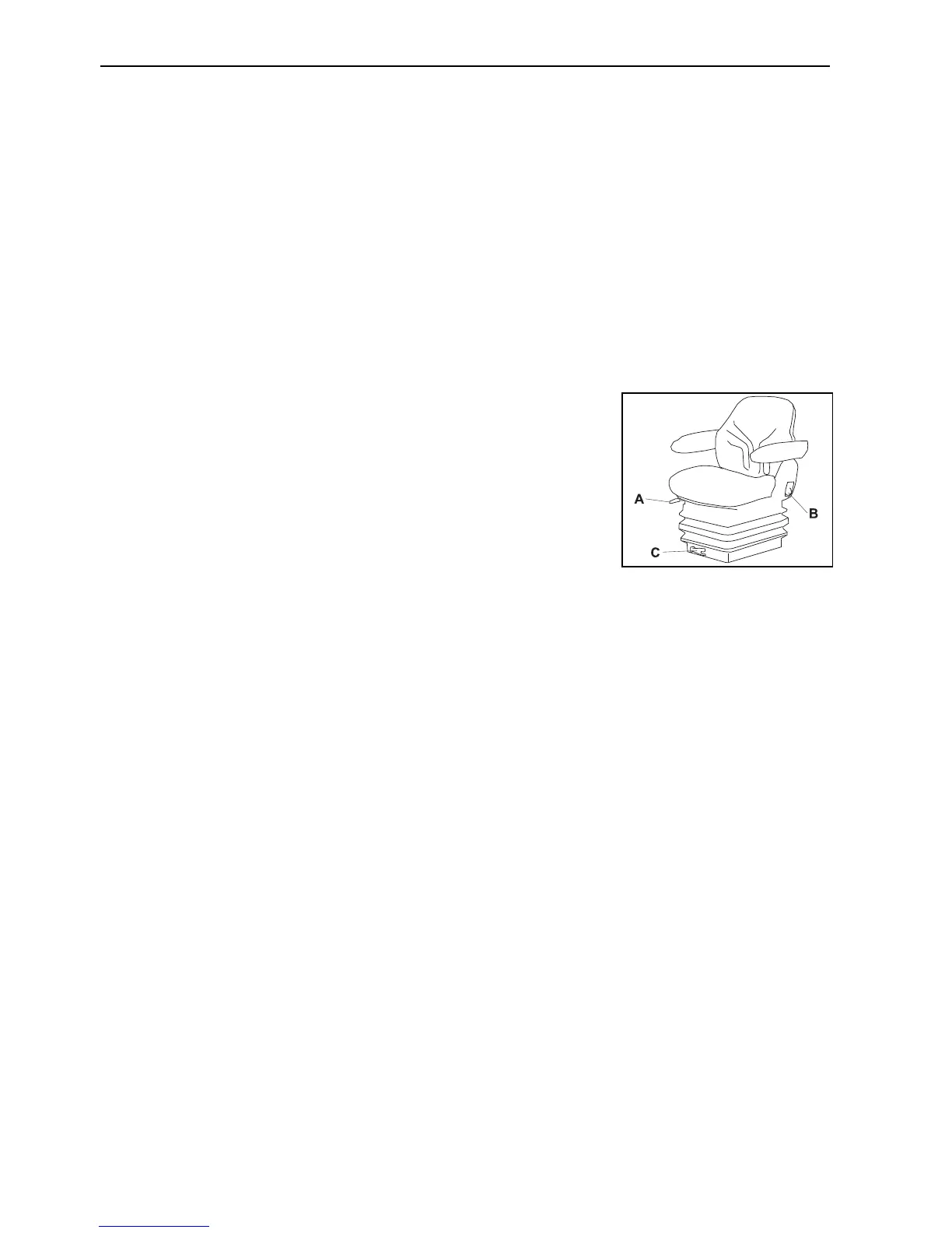 The position of the operator weight adjust lever (C) is on the front of the seat. To