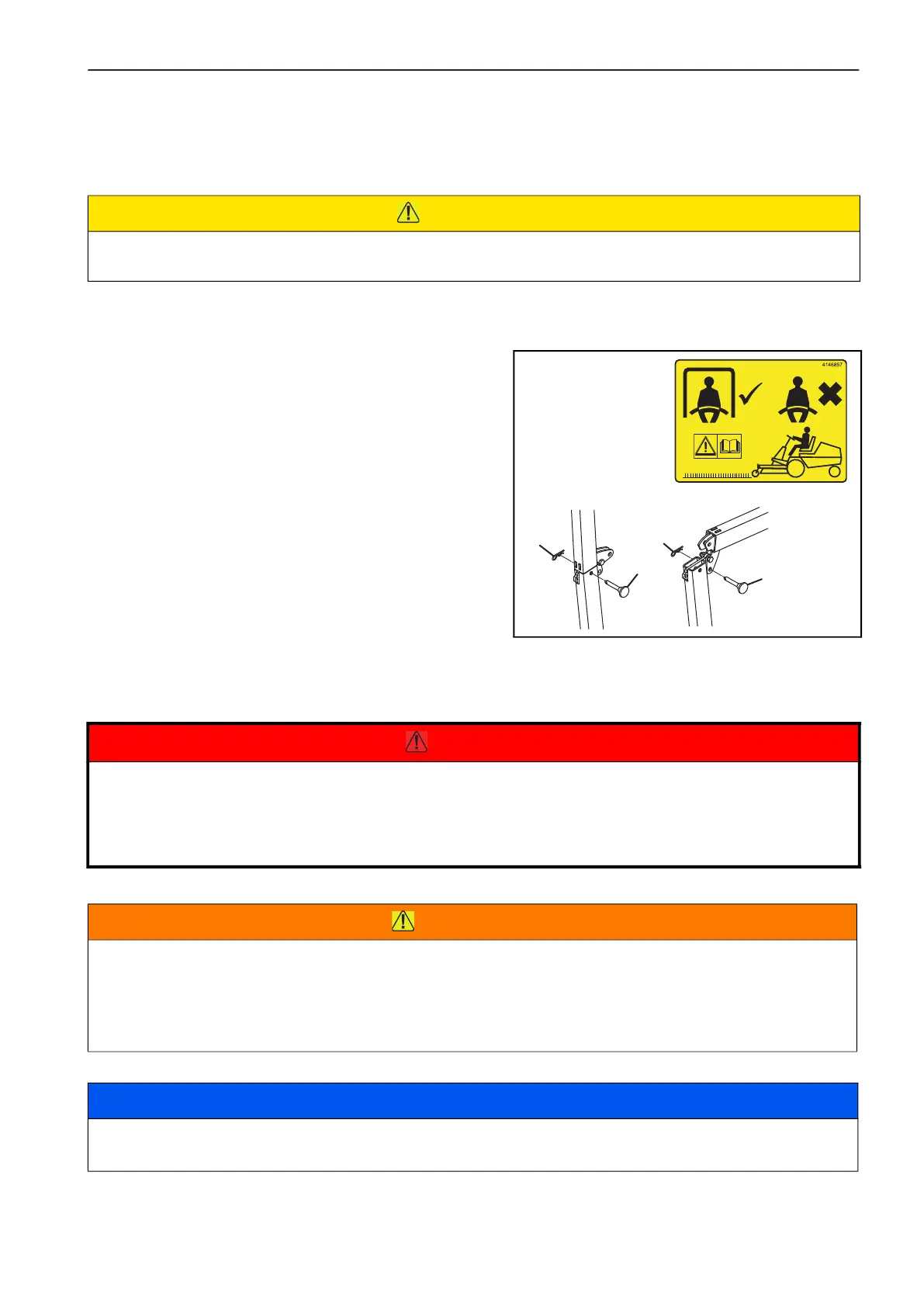 In off road or transport mode, the seat belt must always be worn. The ROPS frame must be in the