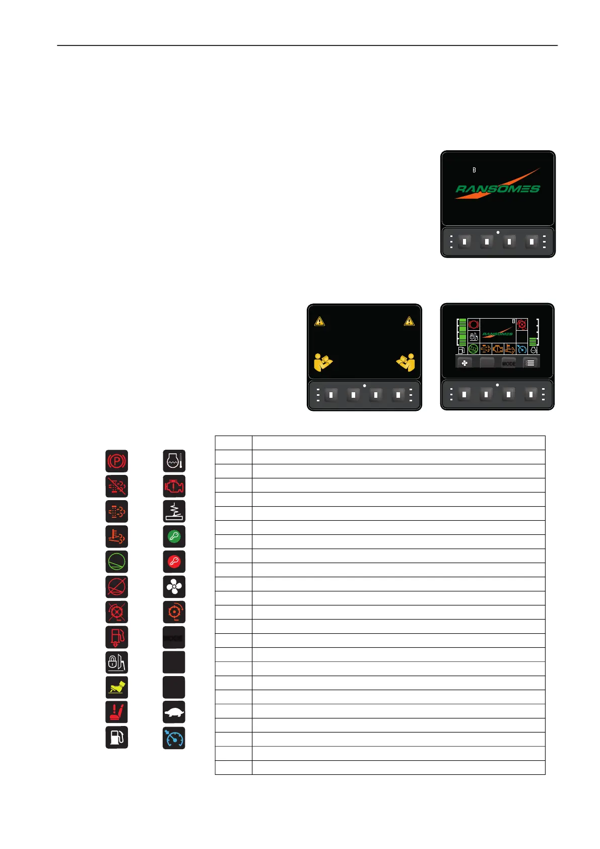 When the Ignition Key is turned to the start position, this screen is shown.