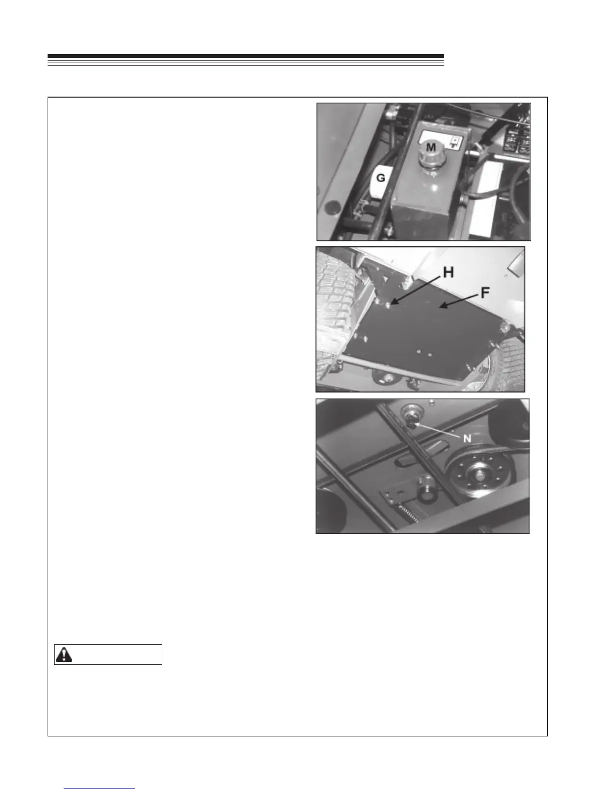 1. Verwijder de uitwerpdeflector F, (4) U-bouten met (8)