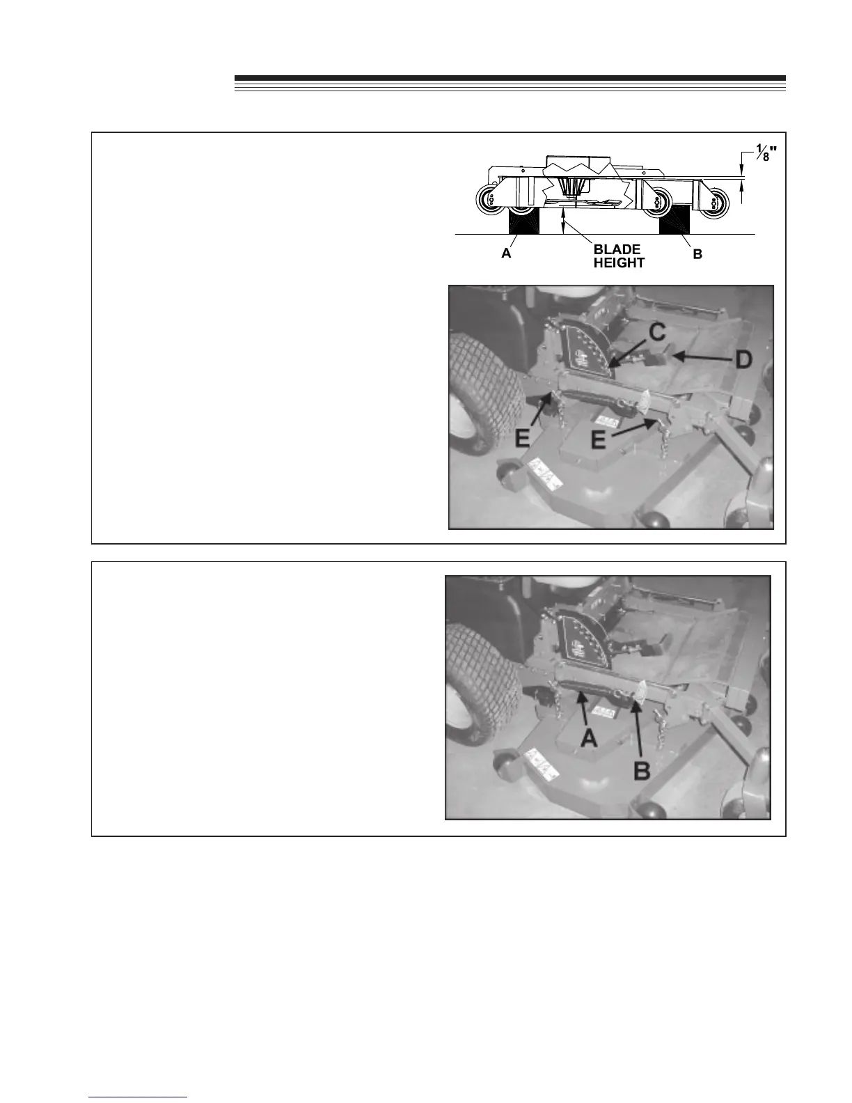 maaihoogteklemmen en stel de schroeven E af.